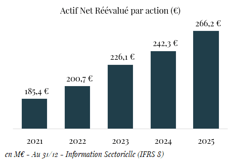L’Actif Net Réévalué correspond à l’estimation de la valeur de marché des actifs détenus par le Groupe, net des dettes financières à la date de clôture.