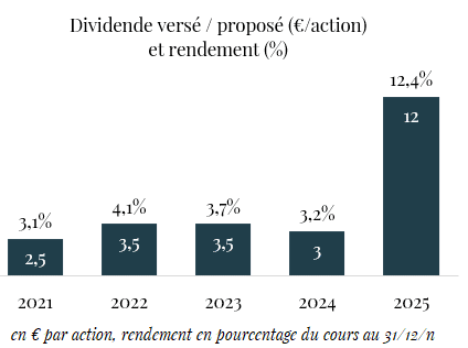 Montant du dividende proposé au vote de l’assemblée générale annuelle du 20 mai 2026 : 12,0€ par action,